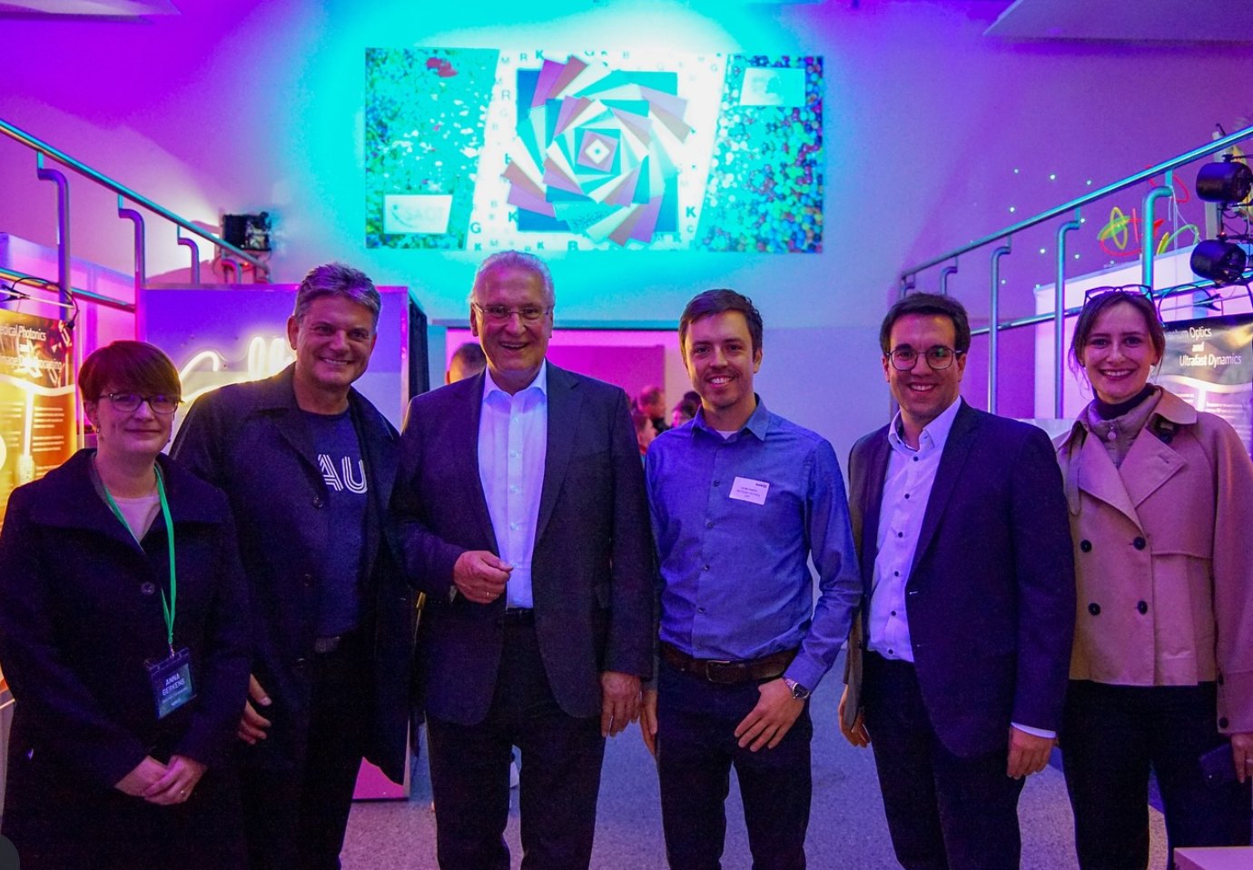 More than 600 people visited our panOPTICUM to learn about photonics and optical technologies. We were honored to welcome Bavarian Minister of the Interior Joachim Herrmann as a special guest. Thank you all for your curiosity, and a big thank you to the SAOT doctoral candidates who explained all the experiments to the visitors. Further, we presented a brief history of quantum physics in the Audimax of FAU. Before all this started, we conducted a light ray experiments with the guests of honor of the opening event at Bayerischer Rundfunk.